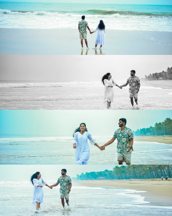 Snehadheeram Beach is more than just a backdrop — it is a storyteller. Every wave, reflection, and candid smile becomes part of a beautiful narrative. Unlike indoor studios or heavily staged sets, the beach allows couples to be themselves while nature frames their story with grace.