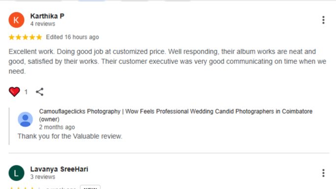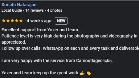 Excellent support from Yazer and team... Patience level is very high during the photography and videography in function which highly appreciated. Follow up over calls. WhatsApp on each and every task and deliverables are excellent. I am very happy with…